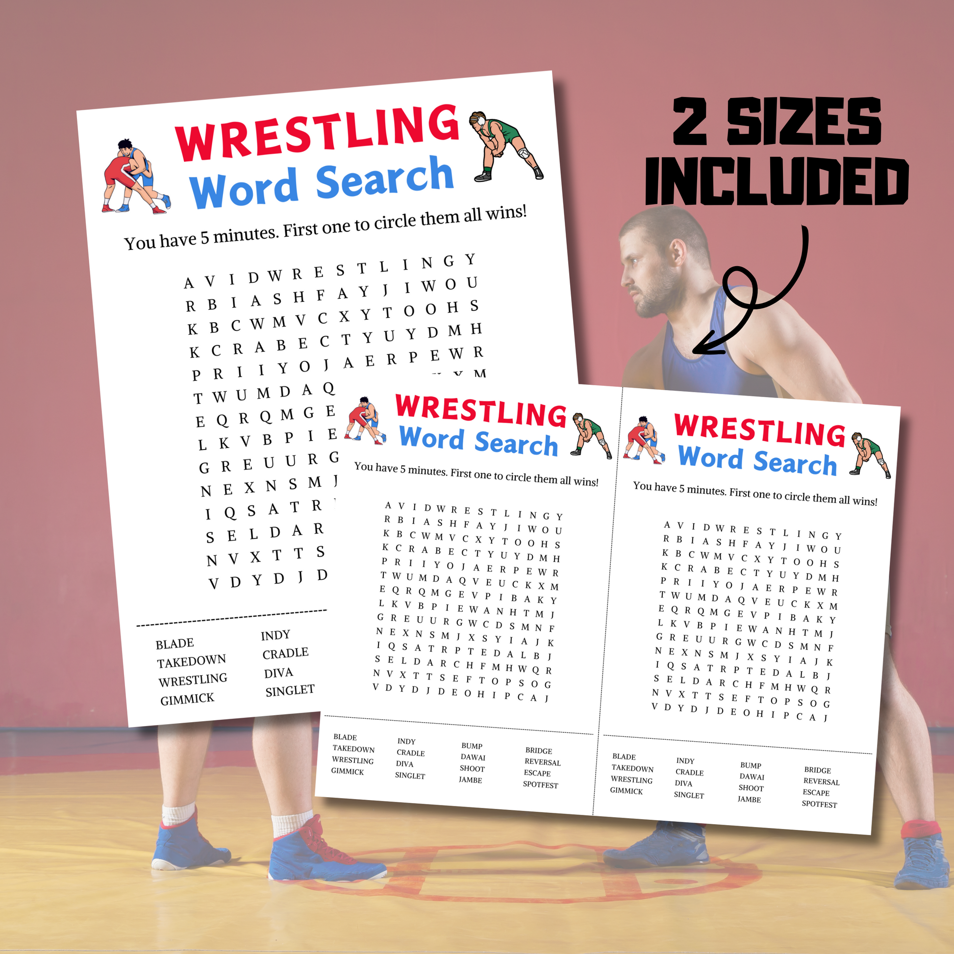 - A file included Wrestling Word Search Game (8.5" x 11") (Questions).